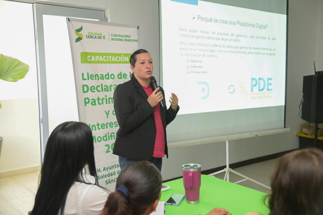 Con el propósito de garantizar la transparencia y rendición de cuentas en el servicio público, el Ayuntamiento de Soledad de Graciano Sánchez llevó a cabo una capacitación dirigida a las más de 60 áreas municipales, enfocada al proceso de Declaración Patrimonial y de Intereses 2025, que iniciará a partir del primer día de mayo.