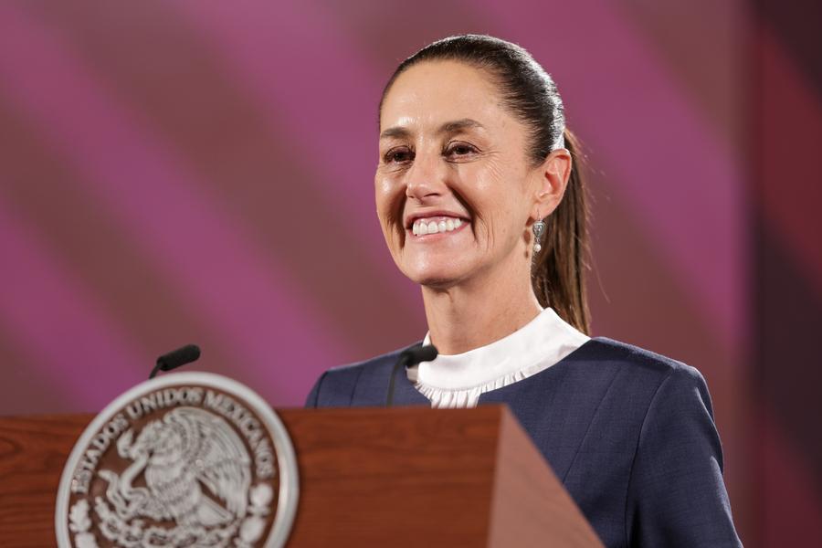 (240610) -- CIUDAD DE MEXICO, 10 junio, 2024 (Xinhua) -- La candidata electa a la Presidencia de México, Claudia Sheinbaum, sonríe durante una conferencia de prensa luego de su reunión con el presidente mexicano, Andrés Manuel López Obrador, en el Salón de la Tesorería de Palacio Nacional, en la Ciudad de México, capital de México, el 10 de junio de 2024. (Xinhua/Francisco Cañedo) (fc) (vf) (ce)