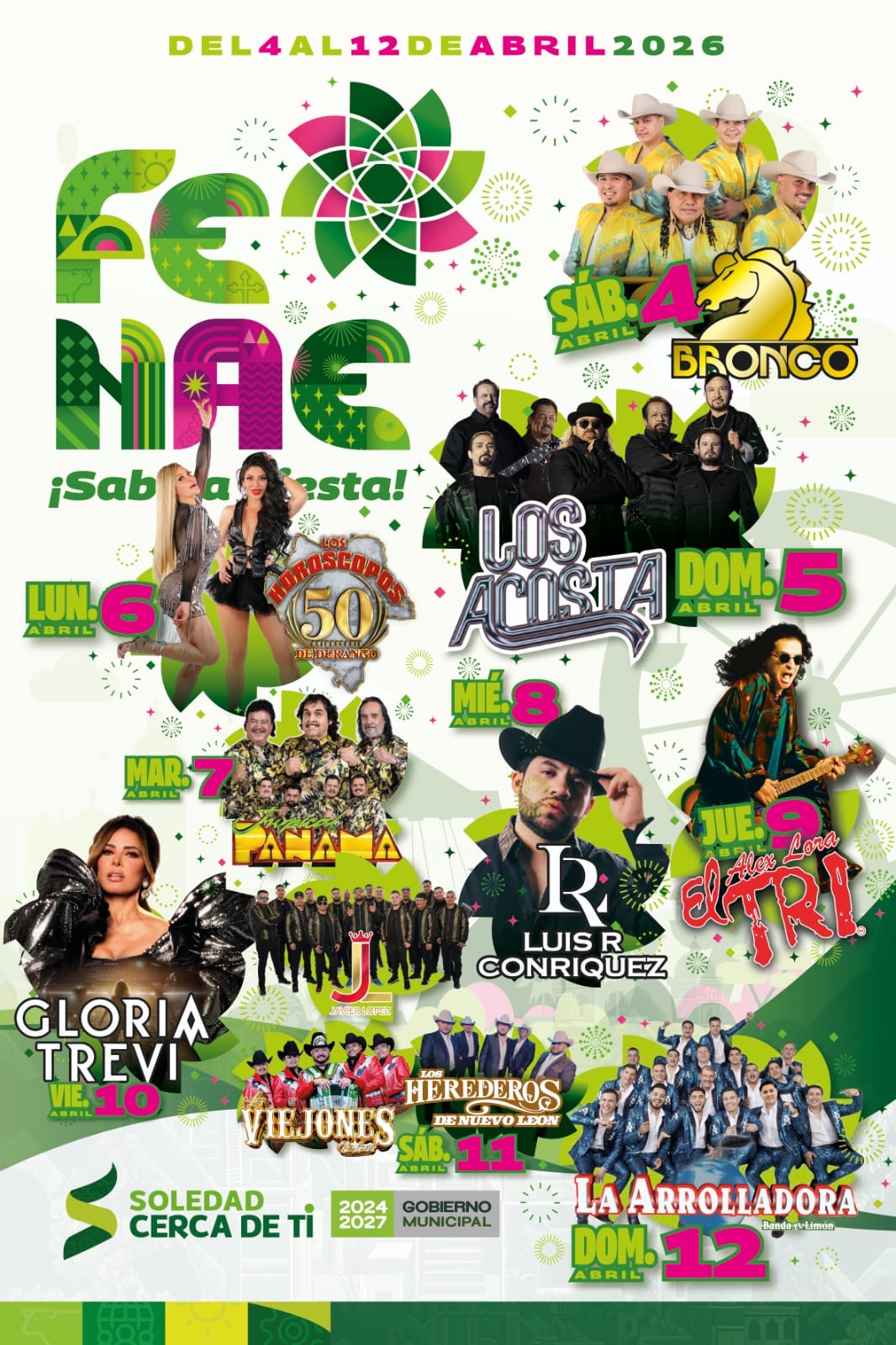 ¡Gloria Trevi, Luis R Conriquez, Bronco, La Arrolladora Banda El Limón, Los Acosta, El Tri y Los Herederos de Nuevo León, darán noches memorables en el centro de Soledad de Graciano Sánchez! ✨🎺👏🏽