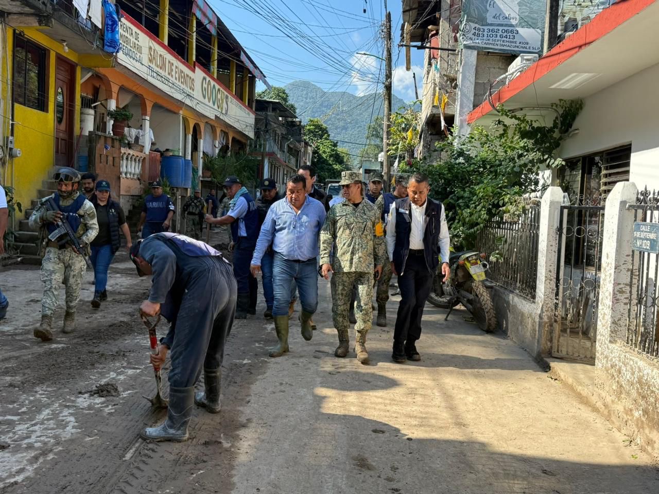 En Tamazunchale, se refuerzan las labores de limpieza con maquinaria y personal especializado. La remoción de escombros y lodo busca restablecer condiciones de habitabilidad y permitir el retorno seguro de las familias evacuadas.
