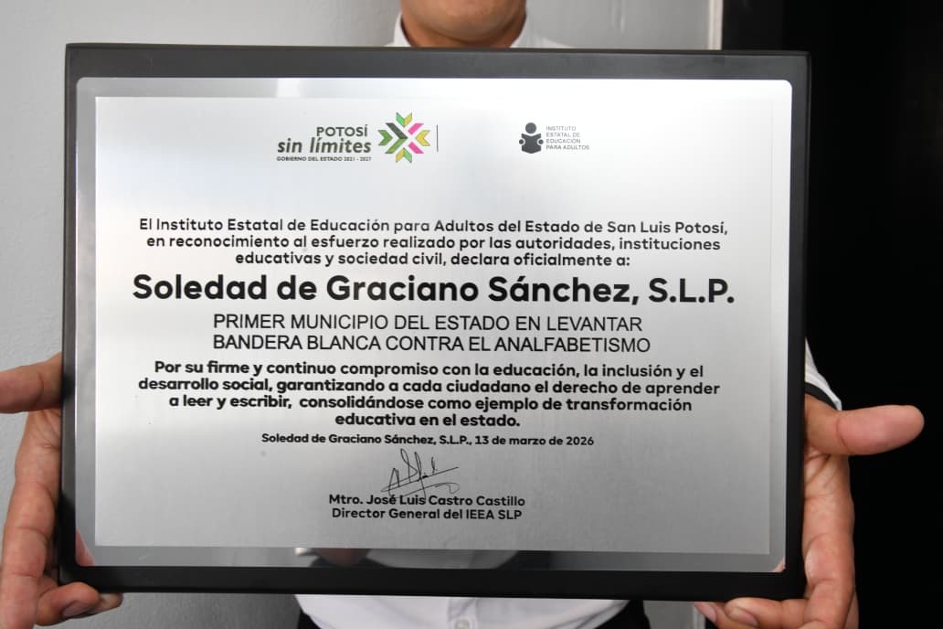 Soledad de Graciano Sánchez continúa consolidando su impulso educativo, reflejado en historias de superación de personas jóvenes y adultas que recientemente recibieron sus certificados de primaria y secundaria tras concluir sus estudios mediante las clases del Instituto Estatal de Educación para Adultos (IEEA), un logro que se suma al reconocimiento que posiciona al municipio con Bandera Blanca y 98.7 por ciento de su población libre de analfabetismo.