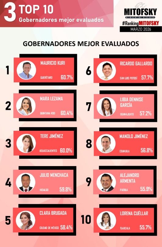 Este resultado no es un hecho aislado, sino la confirmación de una tendencia ascendente y constante que ha mantenido a Gallardo Cardona de forma ininterrumpida dentro del grupo de los mandatarios estatales con mejor desempeño y mayor confianza en todo el país.
