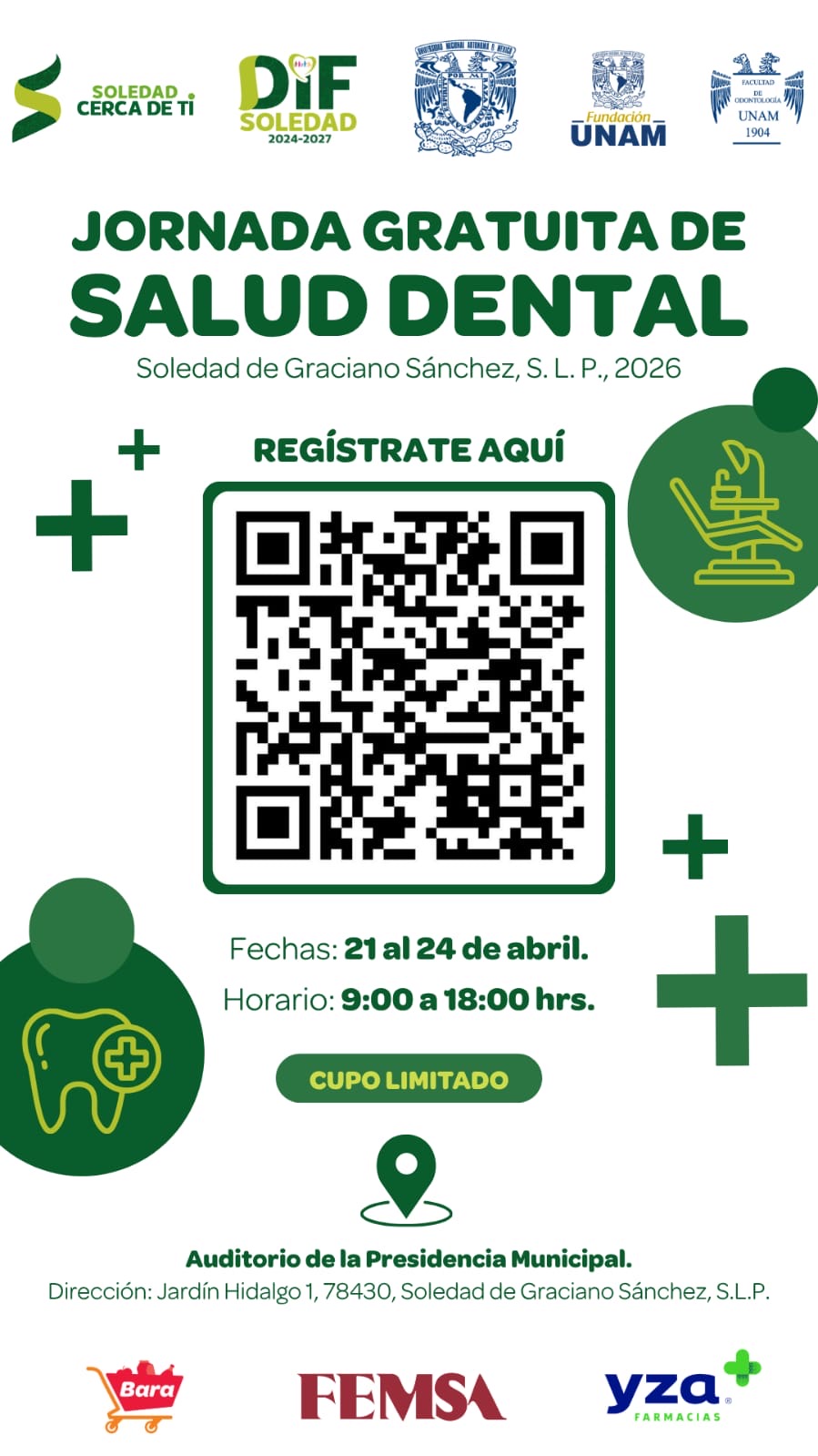 Se invita a toda la población de Soledad de Graciano Sánchez a ser parte de esta iniciativa, beneficiarse con un servicio bucal sin costo y aprovechar la oportunidad histórica que se llevará a cabo en el municipio.