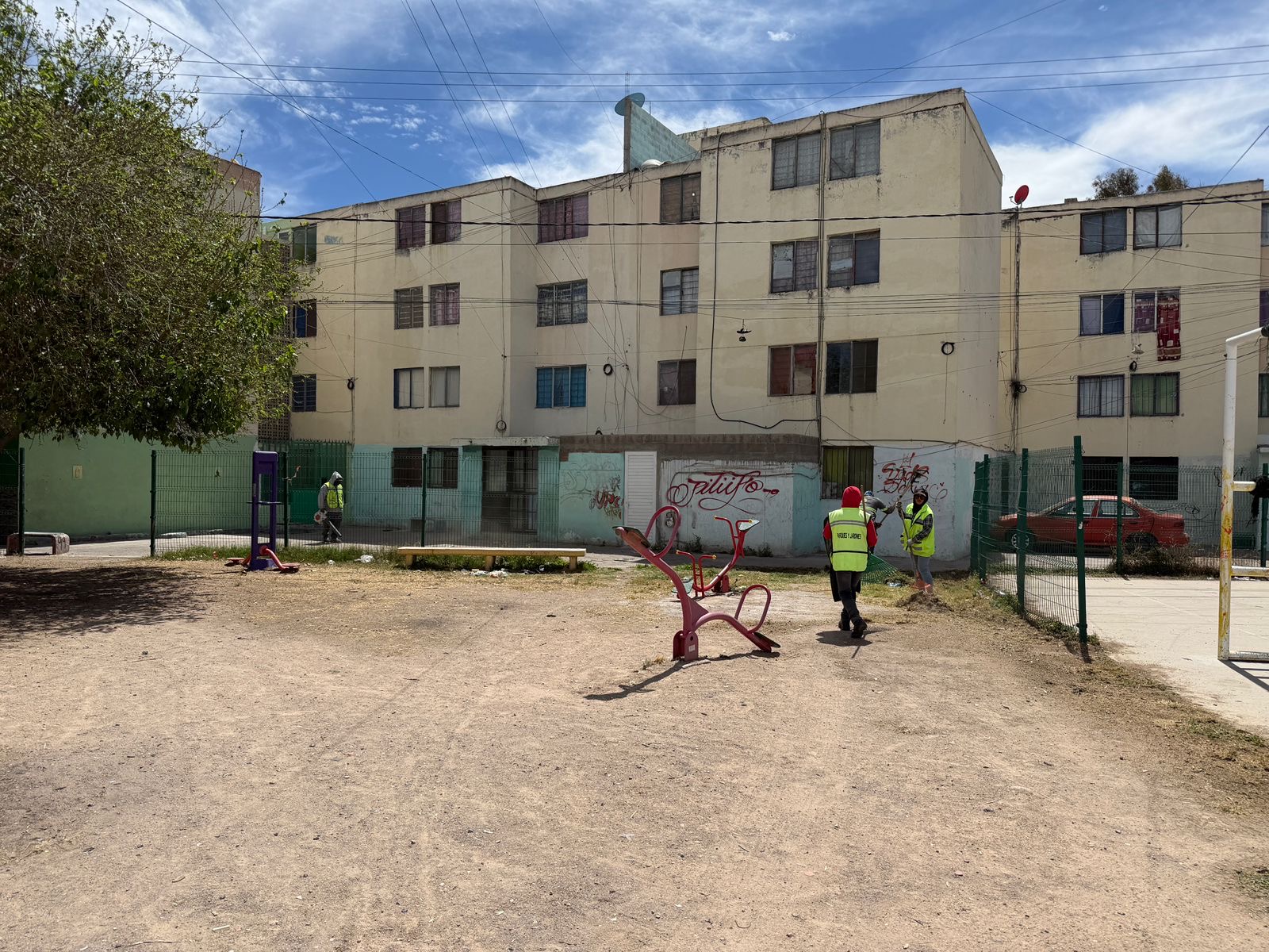 La Dirección de Servicios Municipales de Villa de Pozos llevó a cabo trabajos de rescate de espacios públicos en la Plaza Cóndor, ubicada en la colonia Rancho Viejo Primera Sección, con el objetivo de mejorar las condiciones del lugar y brindar un entorno más limpio y ordenado para las familias de la zona.